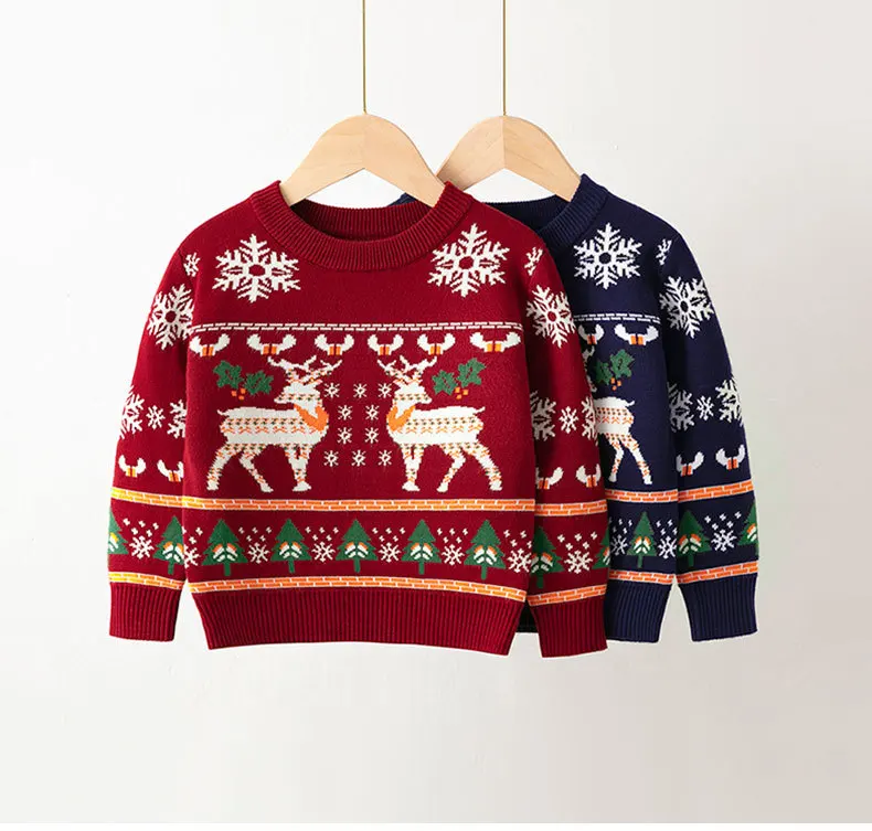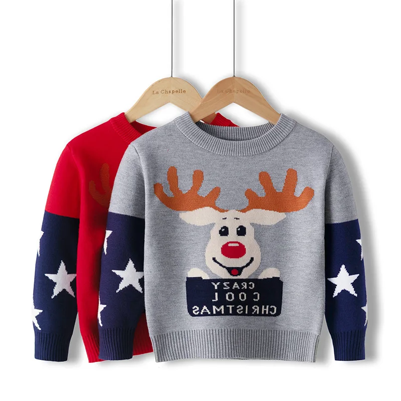 Детские свитера для девочек и мальчиков, топы, одежда, новинка 2021, пуловер для детей на Рождество с мультяшным оленем