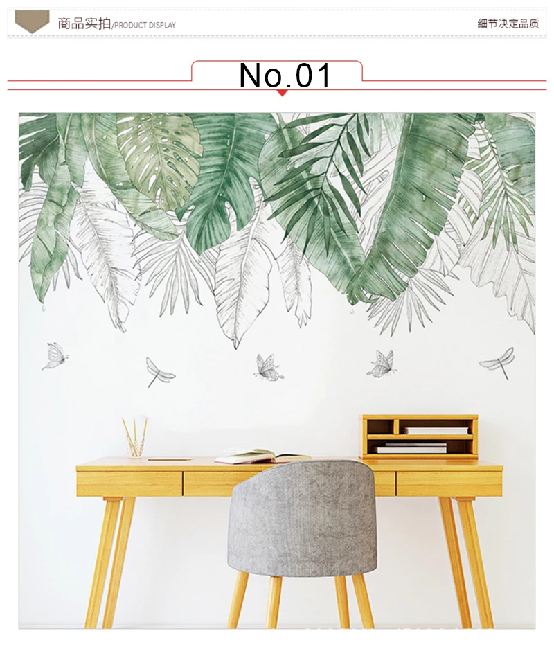 Тропические настенные наклейки с зелеными листьями для спальни, гостиной, дивана, фона телевизора, Настенный декор, съемные виниловые наклейки на стену, домашний декор
