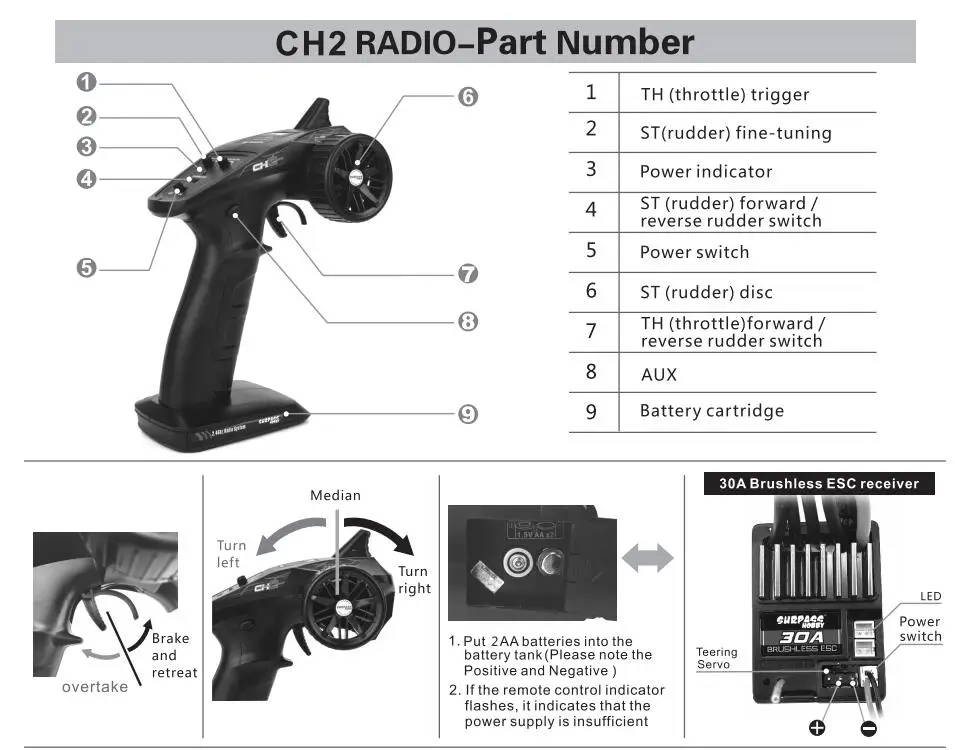 Передатчик RC 2,4G CH2приемник w + Водонепроницаемый 2430 2435 2440 2838 2845 бесщеточный двигатель + 2 в 1 Esc для радиоуправляемого автомобиля лодки