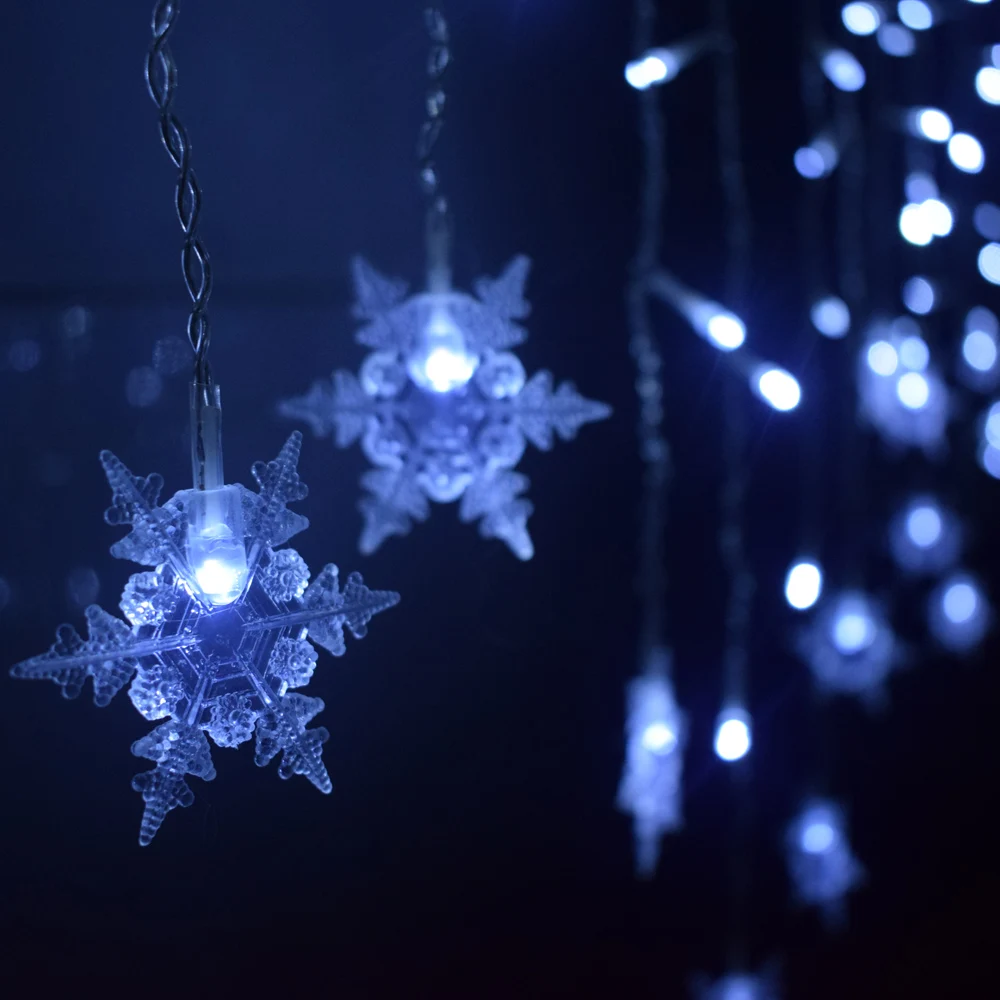 Рождественское украшение, гирлянда, занавеска, светодиодные сказочные огни, новый год 2022, снежинки, сосульки для комнаты, Декор, рождевечерние ринка, свадьба, улицы