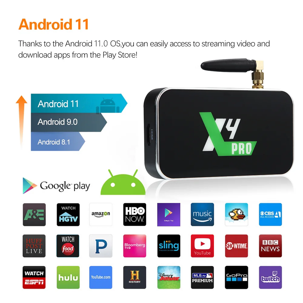 Приставка Смарт-ТВ UGOOS X4 PRO, 1000 м, Android 11,0, 4 + 32 ГБ
