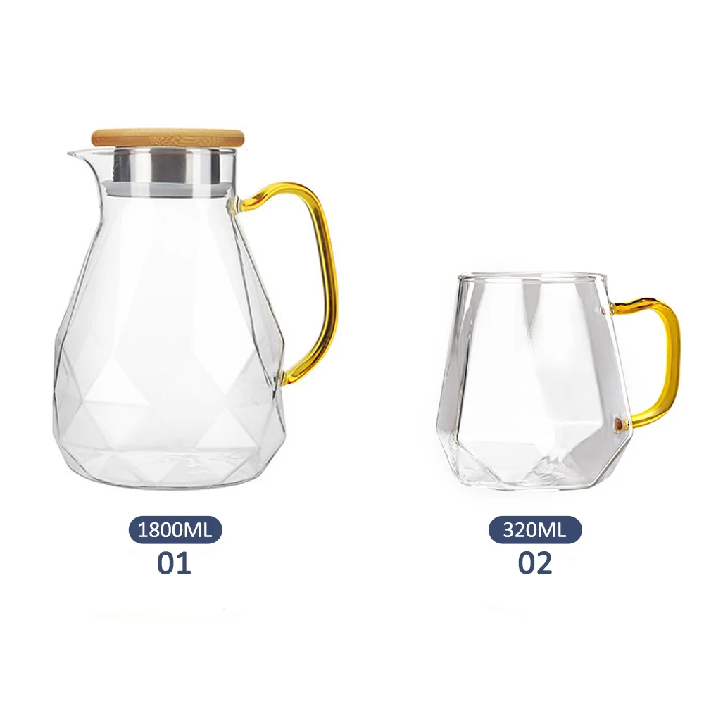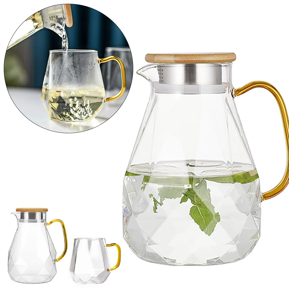 350 л кувшин для холодной воды мл кружка для воды стеклянный чайник с алмазной текстурой прозрачный кофейник домашняя термостойкая фотография