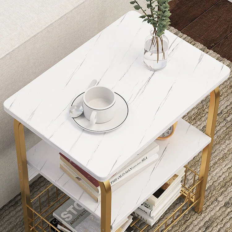 Деревянный журнальный столик с мраморной текстурой JOYLIVE, столик для дивана, ночная тумбочка с корзиной для хранения, поднос для спальни, гостиной