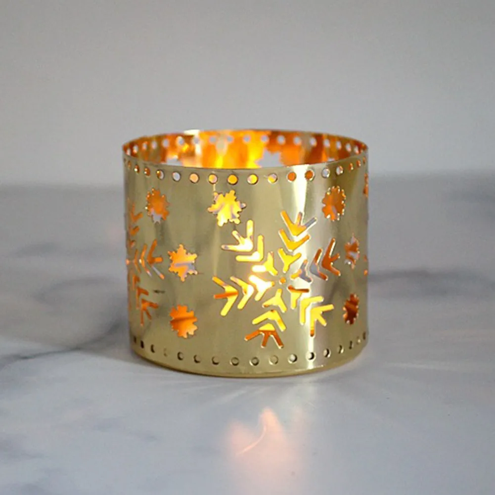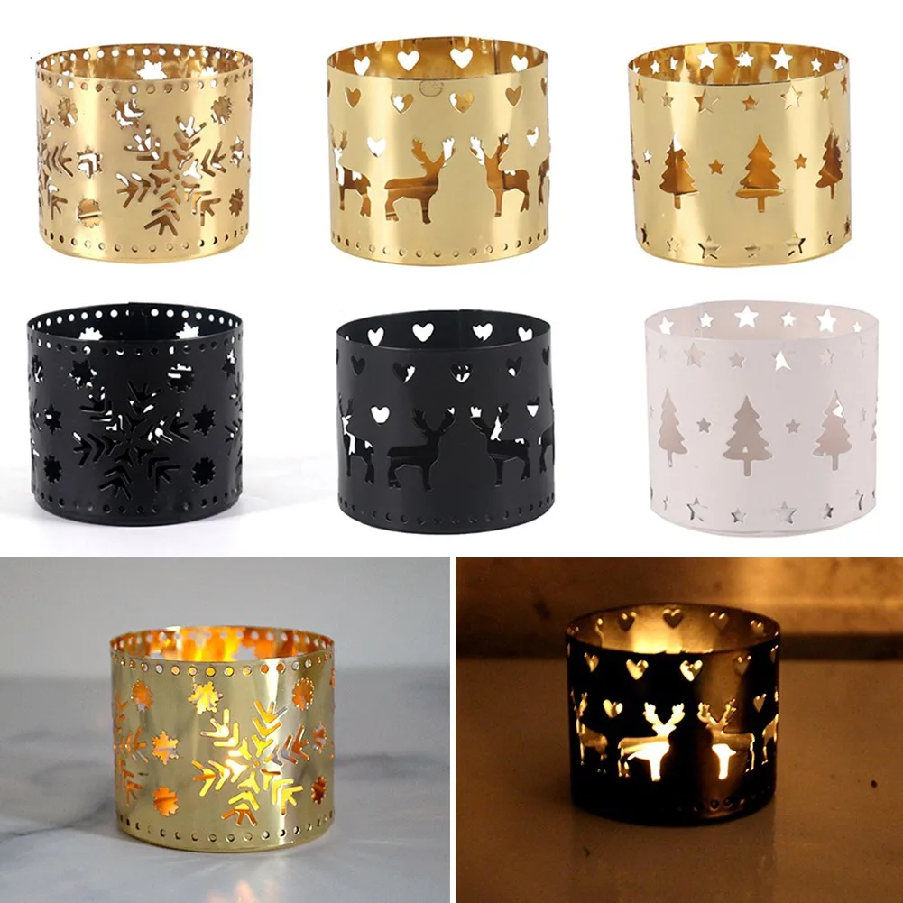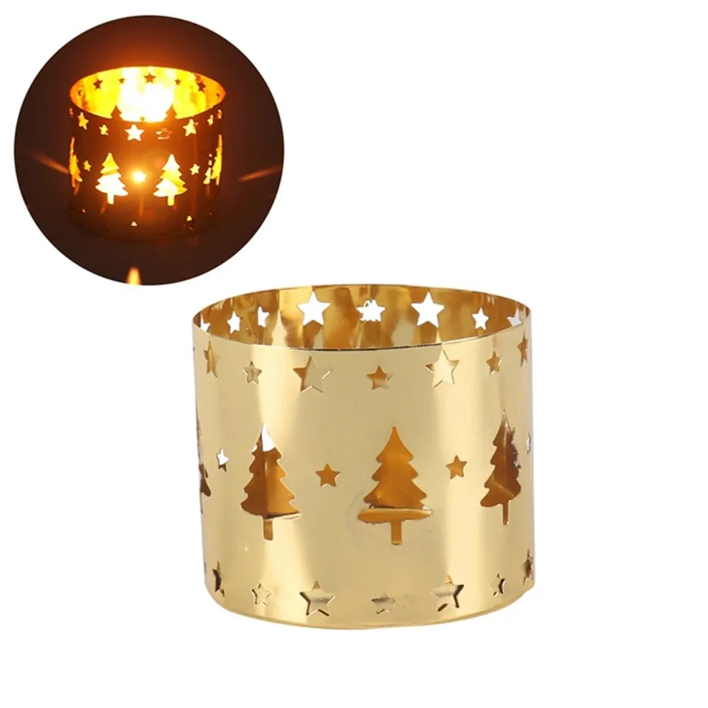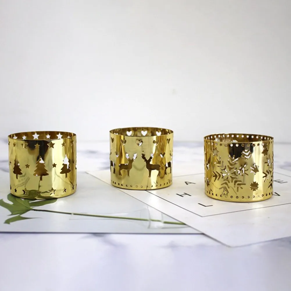 Рождественский металлический подсвечник, золотой полый узор, креативный Железный подсвечник для дома, рождественские украшения, подарки
