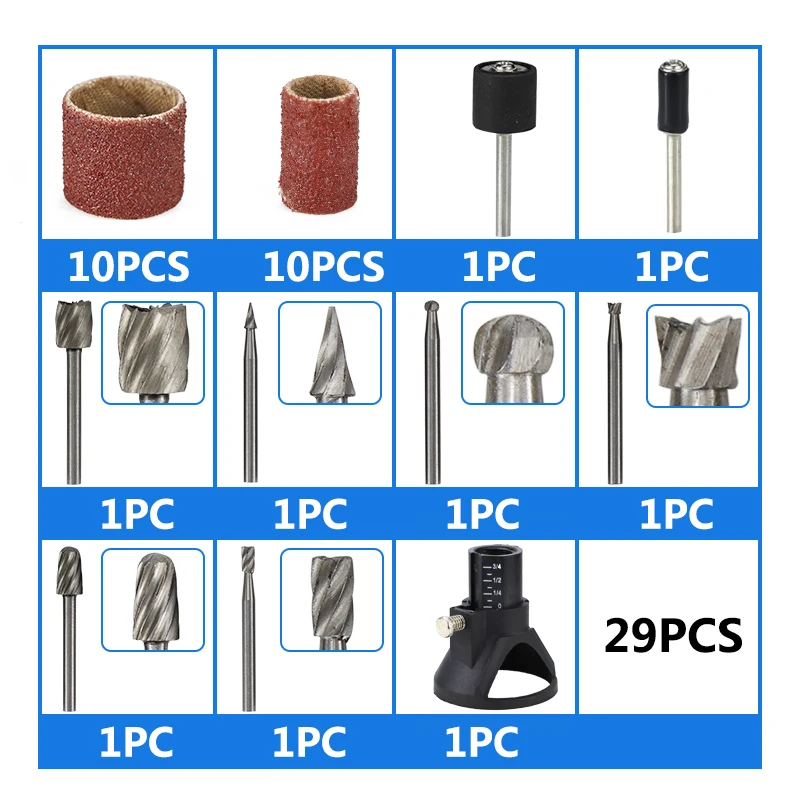 CMCP роторные Инструменты Аксессуары 29 шт. шлифовальные ленты шлифовальный барабан, HSS фрезерный станок, сверло локатор для Dremel роторные инструменты