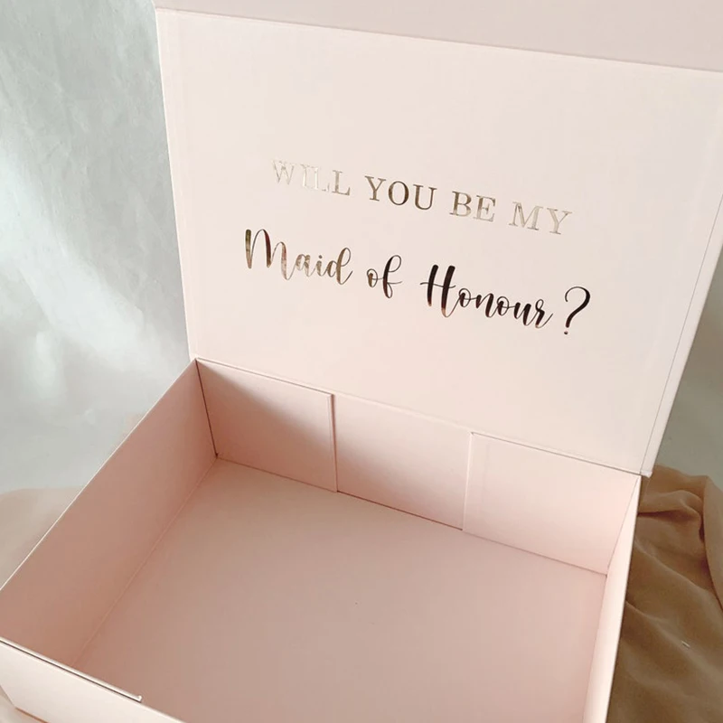Эта Подарочная коробка подходит для свадебных целей. Его можно использовать для размещения подарков подружки невесты. Поверхность коробки может быть настроена с именами подружек невесты и жениха. Внутренняя часть коробки может быть настроена, чтобы благословить невесты и жениха, или она может быть настроена: вы будете моей подругой невесты?