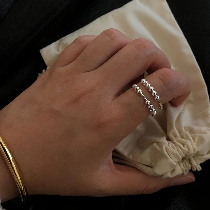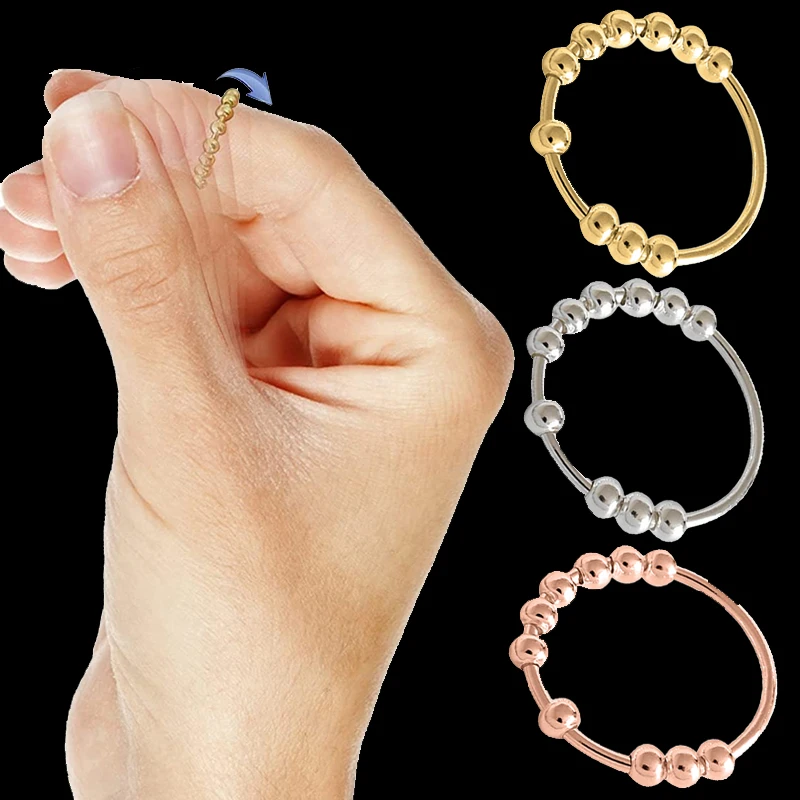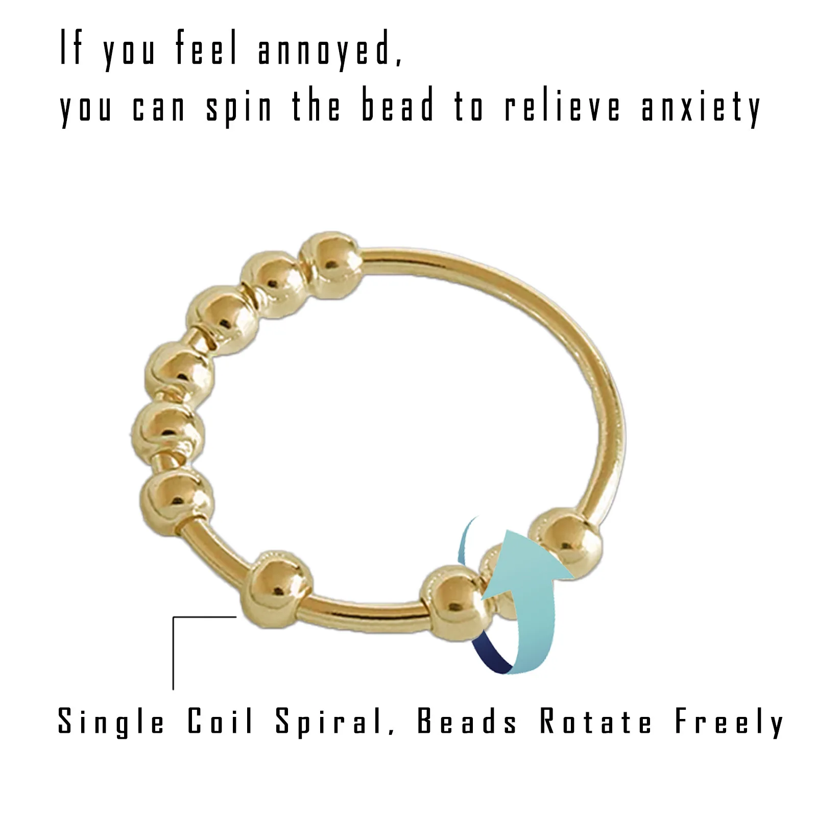 Кольца-антистресс для мужчин и женщин, спиральные вращающиеся антистрессовые кольца с бусинами, S M L