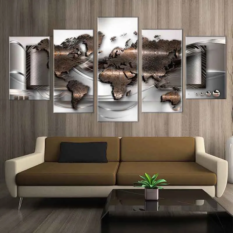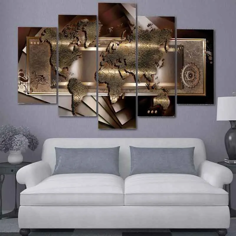 Современная Картина на холсте, 5 панелей, мировой плакат-карта и печать, абстрактная карта мира для гостиной, офиса, декора стен, без рамки