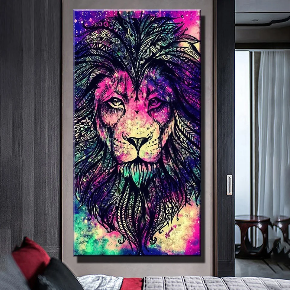 Алмазная мозаика 5D в виде цветного льва для творчества, алмазная живопись, рукоделие, вышивка крестиком, стразы, Декор, большое животное EE2236