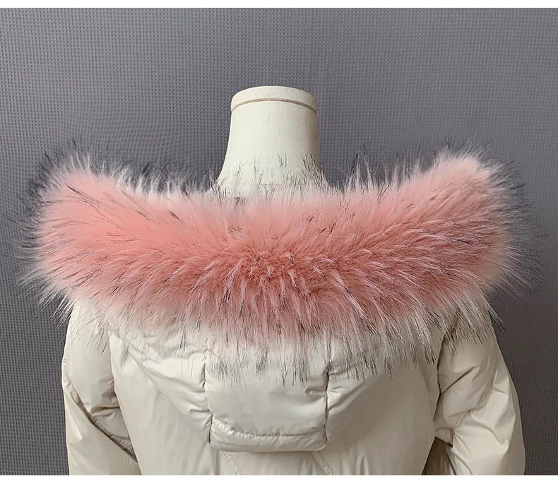 2021 высококачественные женские куртки с воротником из искусственного меха енота, роскошный меховой декор для мужчин и детей, зимняя одежда, аксессуары розового цвета, ширина 14 см
