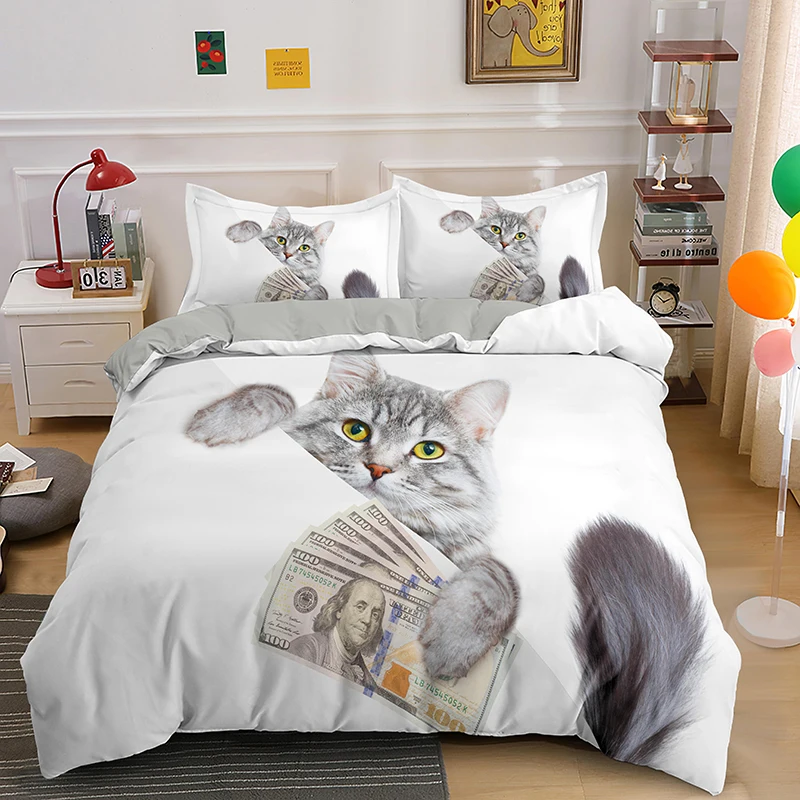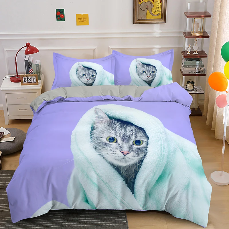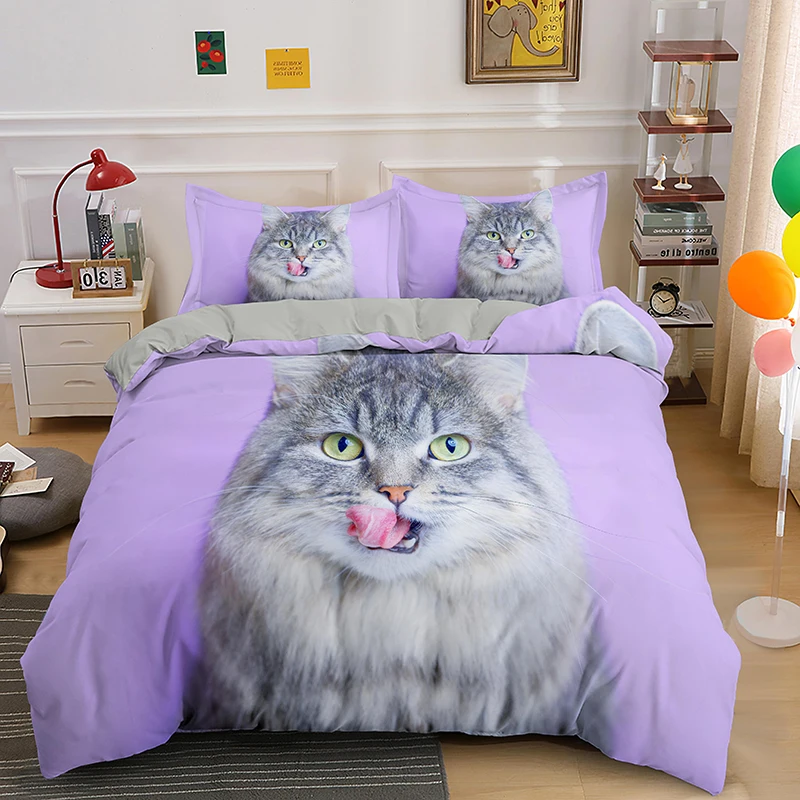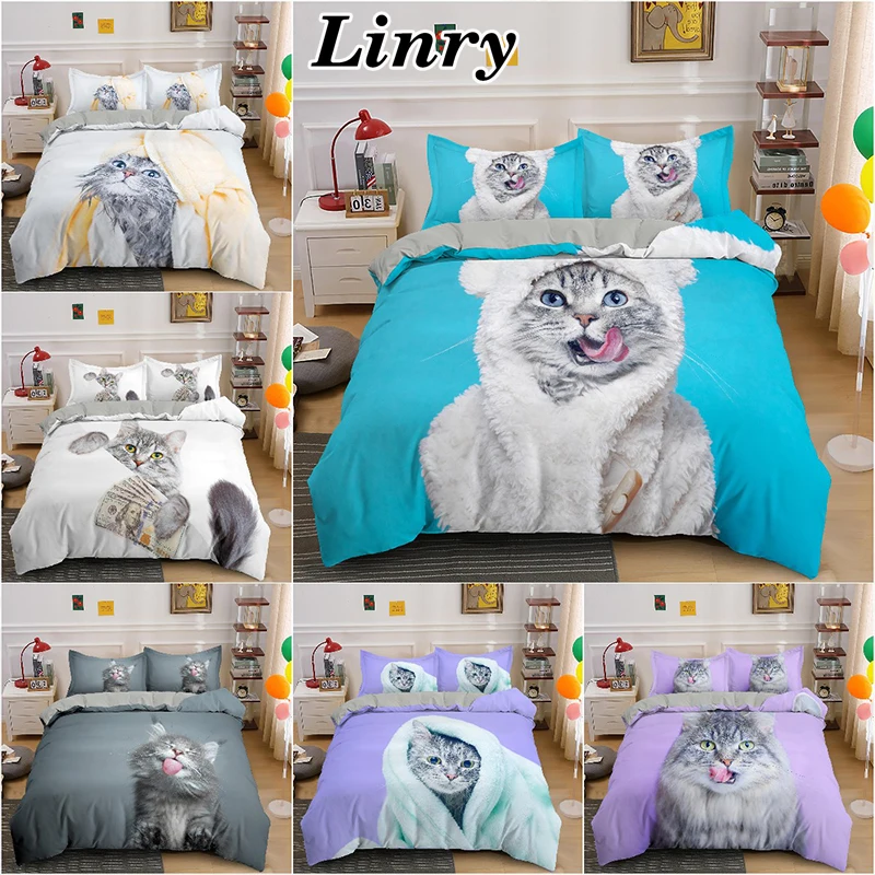 Комплект постельного белья из микрофибры, с 3D-принтом кошки, для о...