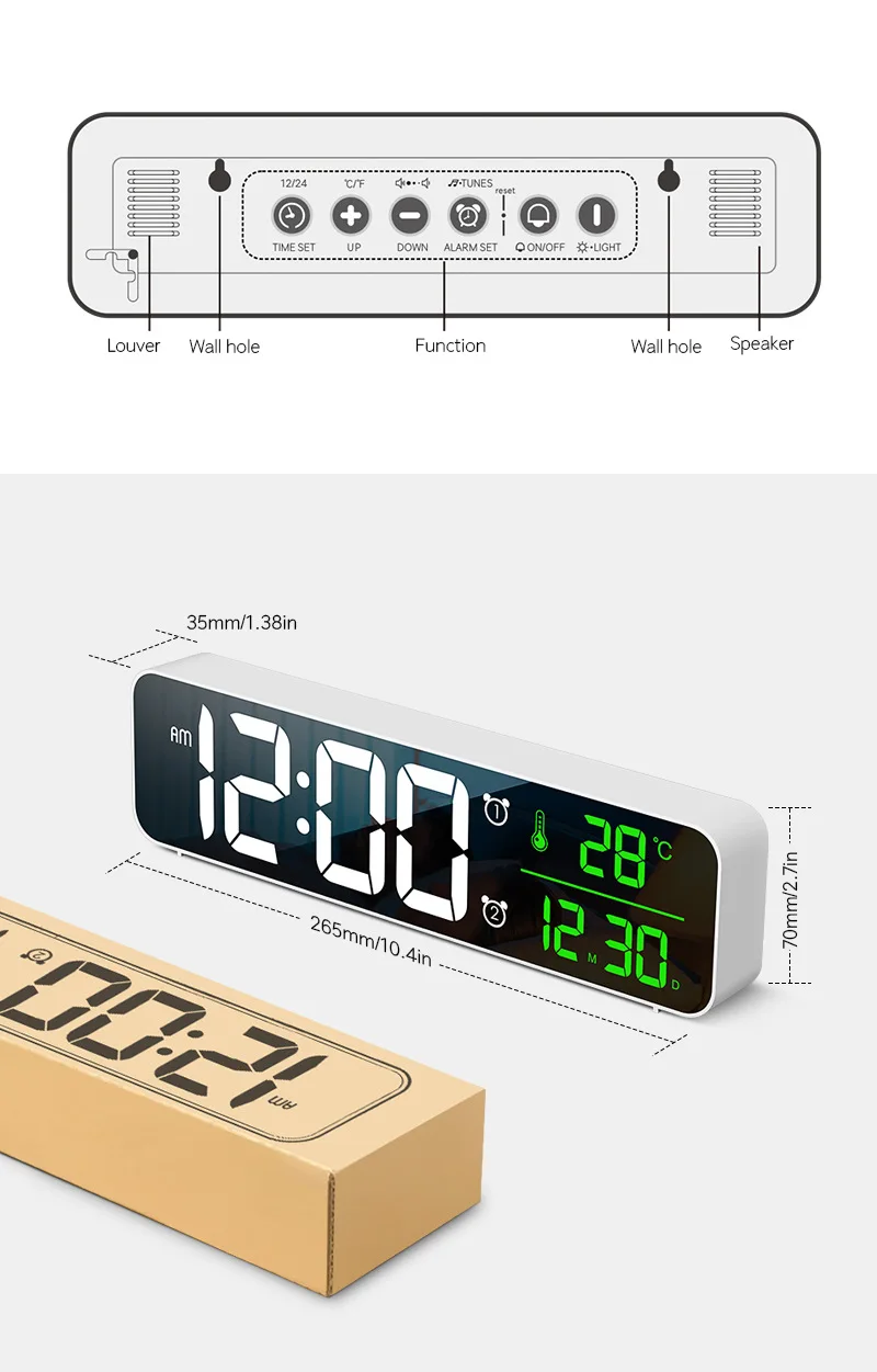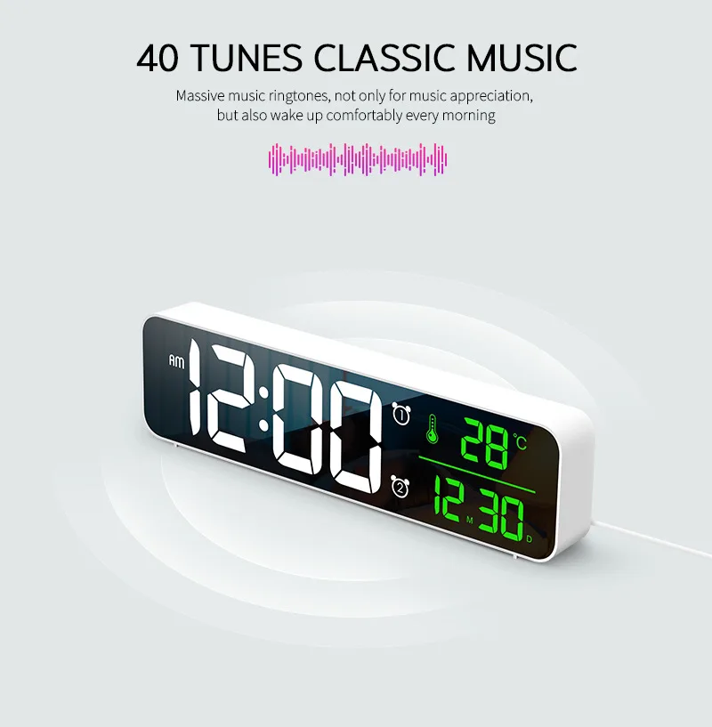 Музыкальный будильник, настольные зеркальные часы, электронные часы...