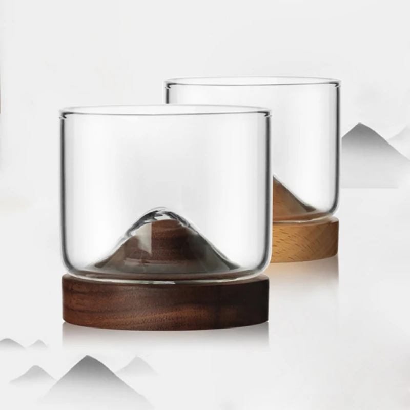 Прозрачный горный стакан для виски с деревянной основой, 4 унции, термостойкий стакан для пива, вина, воды, чая, Набор чашек для бара, посуда для напитков