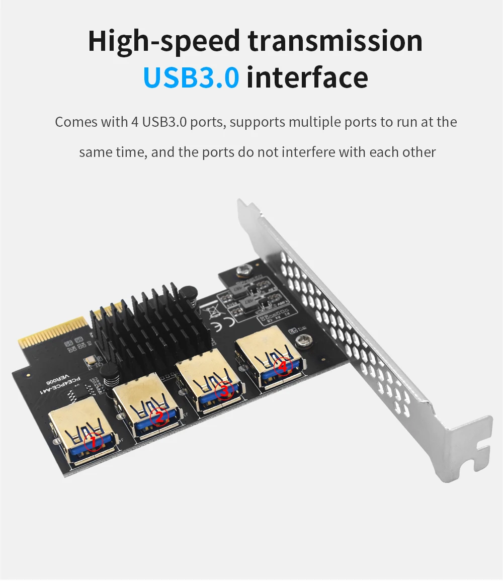 TISHRIC PCIE 4X до 4 Prot USB 3,0 Экспресс Райс расширения карты от 1 до 4 USB 3,0 слот усилитель концентратор адаптер для майнинга BTC