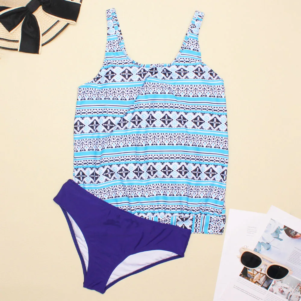 Женский раздельный купальник с принтом, бикини синего цвета с оборк...