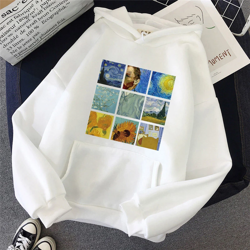 Худи с принтом Ван Гога для женщин, осенне-зимняя флисовая толстовка, худи, винтажная Эстетическая одежда, Женский пуловер, женская одежда