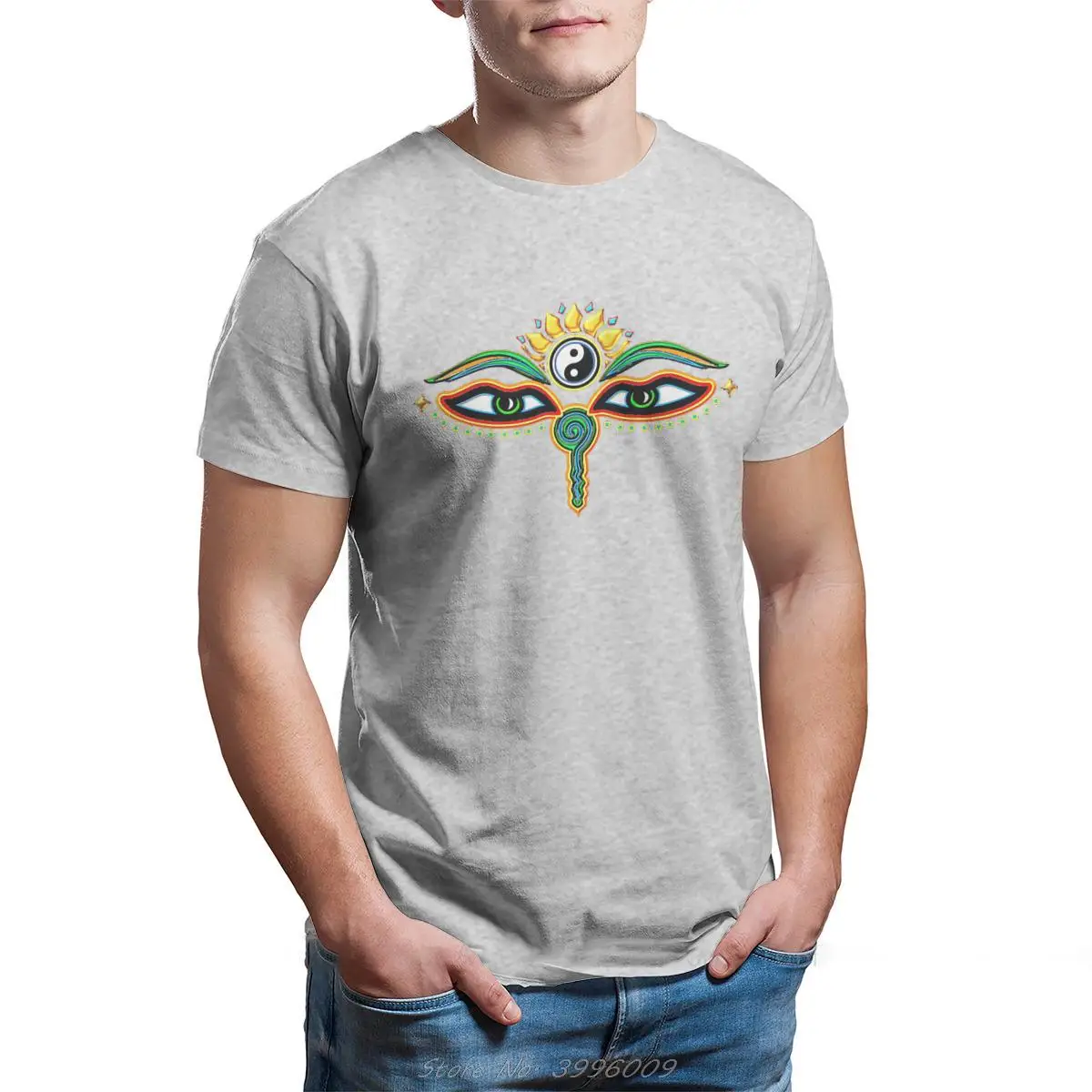 Футболка с изображением статуи будды, символа глаз и мудрости, футболка с круглым вырезом, большой размер, футболки, топ, хлопковая классическая одежда