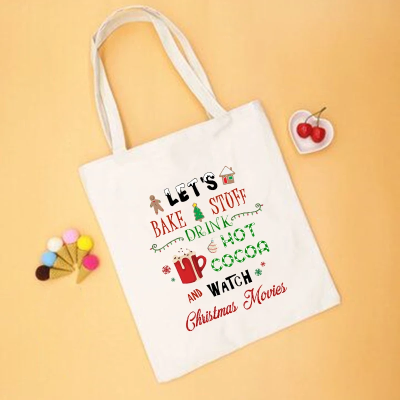 Рождественская сумка для покупок с принтом Санты, женские холщовые сумки на плечо, дорожная сумка для хранения, многоразовая Складная Экологически чистая Сумка-тоут, подарок на Рождество