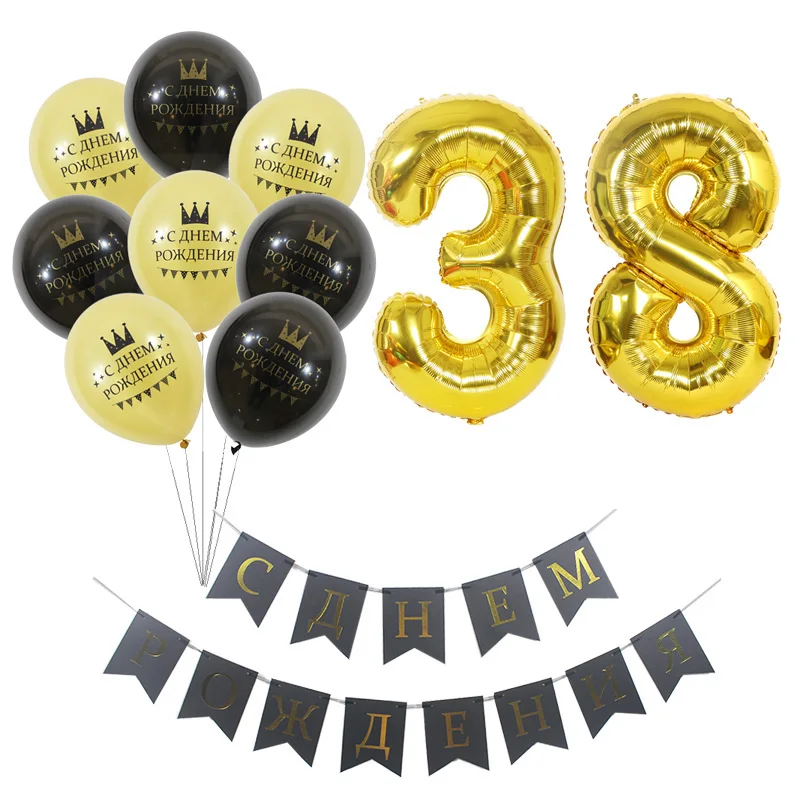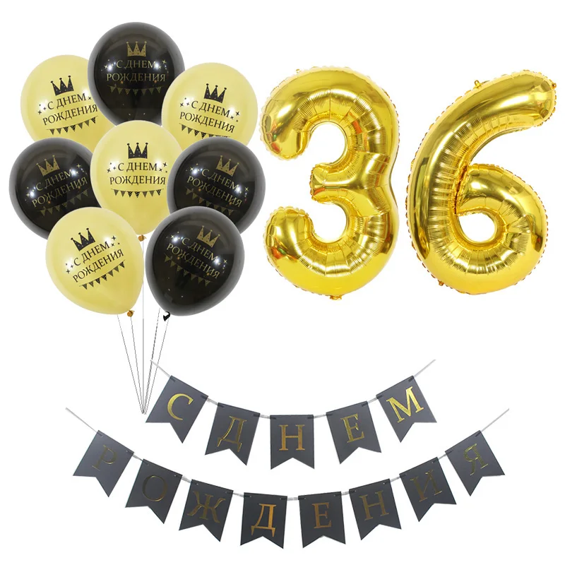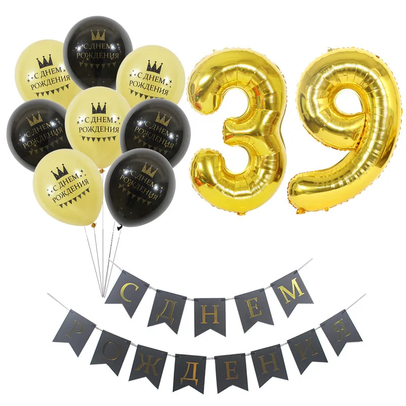 1 комплект, шары на русском языке с надписью Happy Birthday, 30, 31, 32, 33, 34, 35, 36, 37, 38, 39 лет
