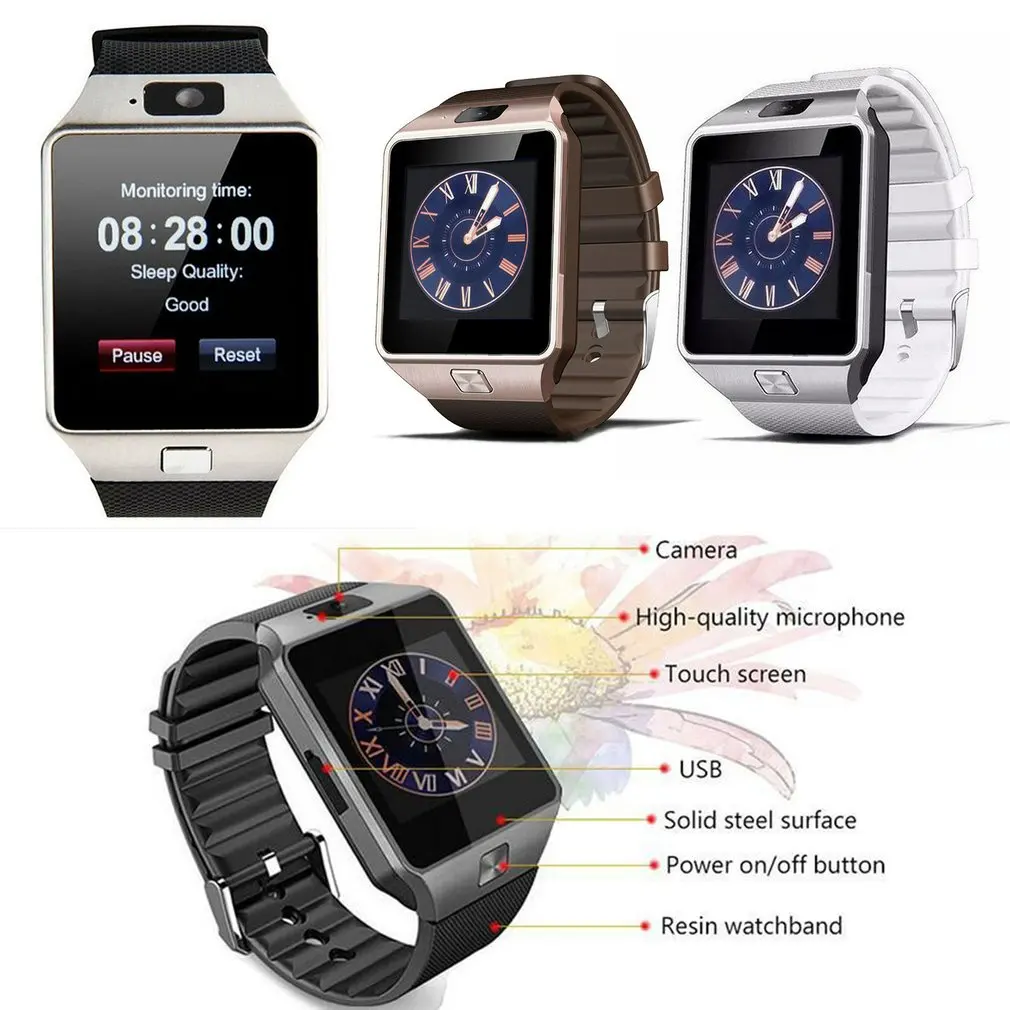 Умные часы DZ09, совместимые с Bluetooth, для мужчин и женщин, сенсорный экран, фитнес-трекер, монитор, браслет, спортивные водонепроницаемые умные часы
