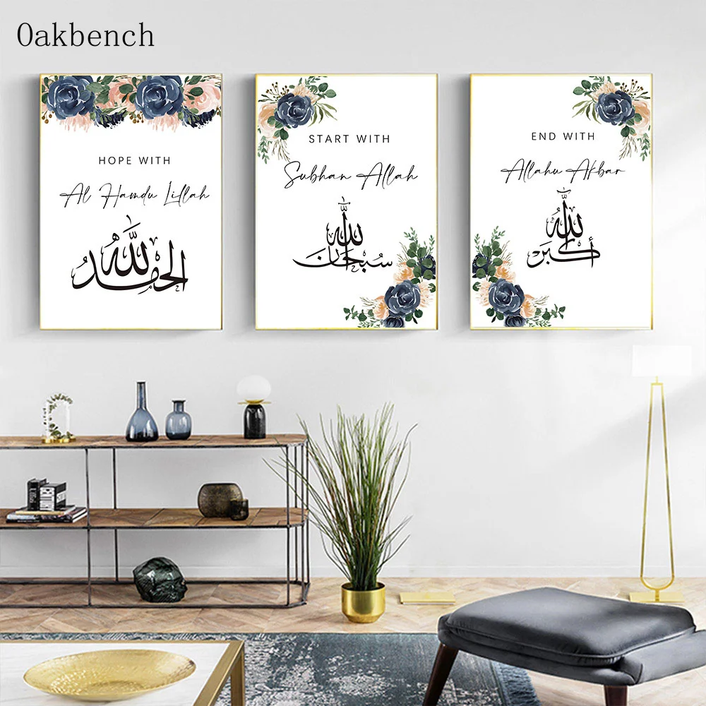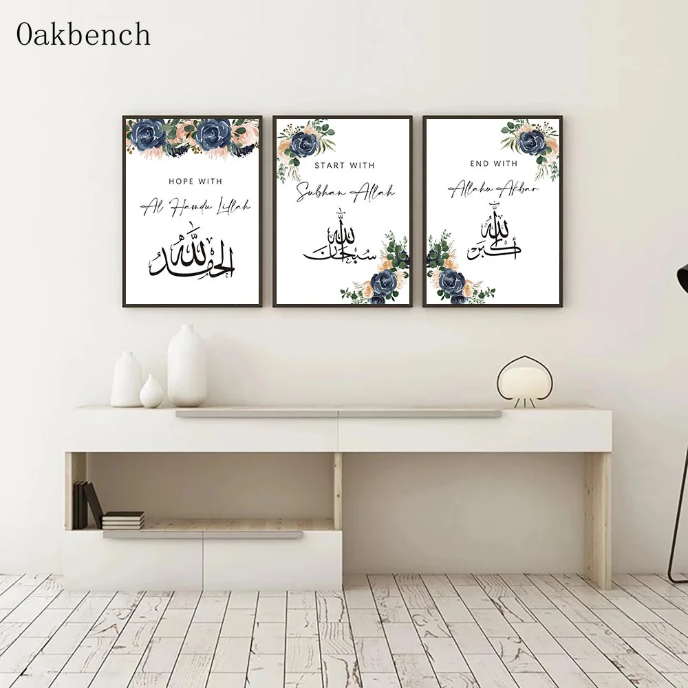 Цветочный плакат, мусульманская настенная Картина на холсте, постеры и принты Аллаха, настенные картины в скандинавском стиле для украшения гостиной