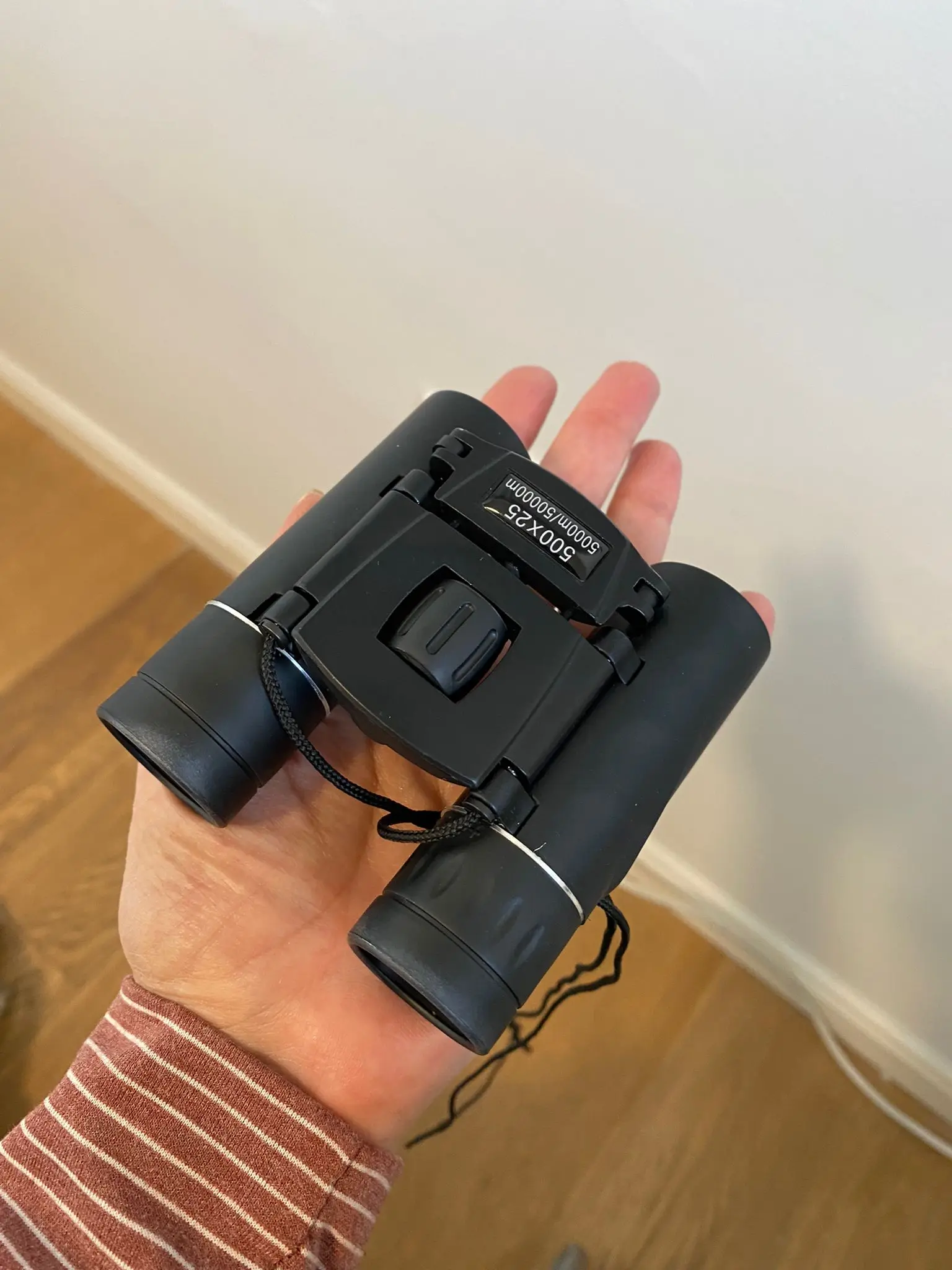 Супер маленький бинокль. Выглядит как игрушка. Я хочу плакать. Это размер старого IPhone SE.