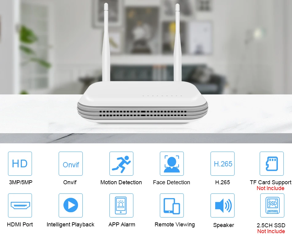 Сетевой видеорегистратор Smar, беспроводной сетевой видеорегистратор H.265, 8 каналов, 3 Мп, 5 Мп, поддержка обнаружения лица, e-mail, Alart, для IP-камер систем видеонаблюдения, XMEYE