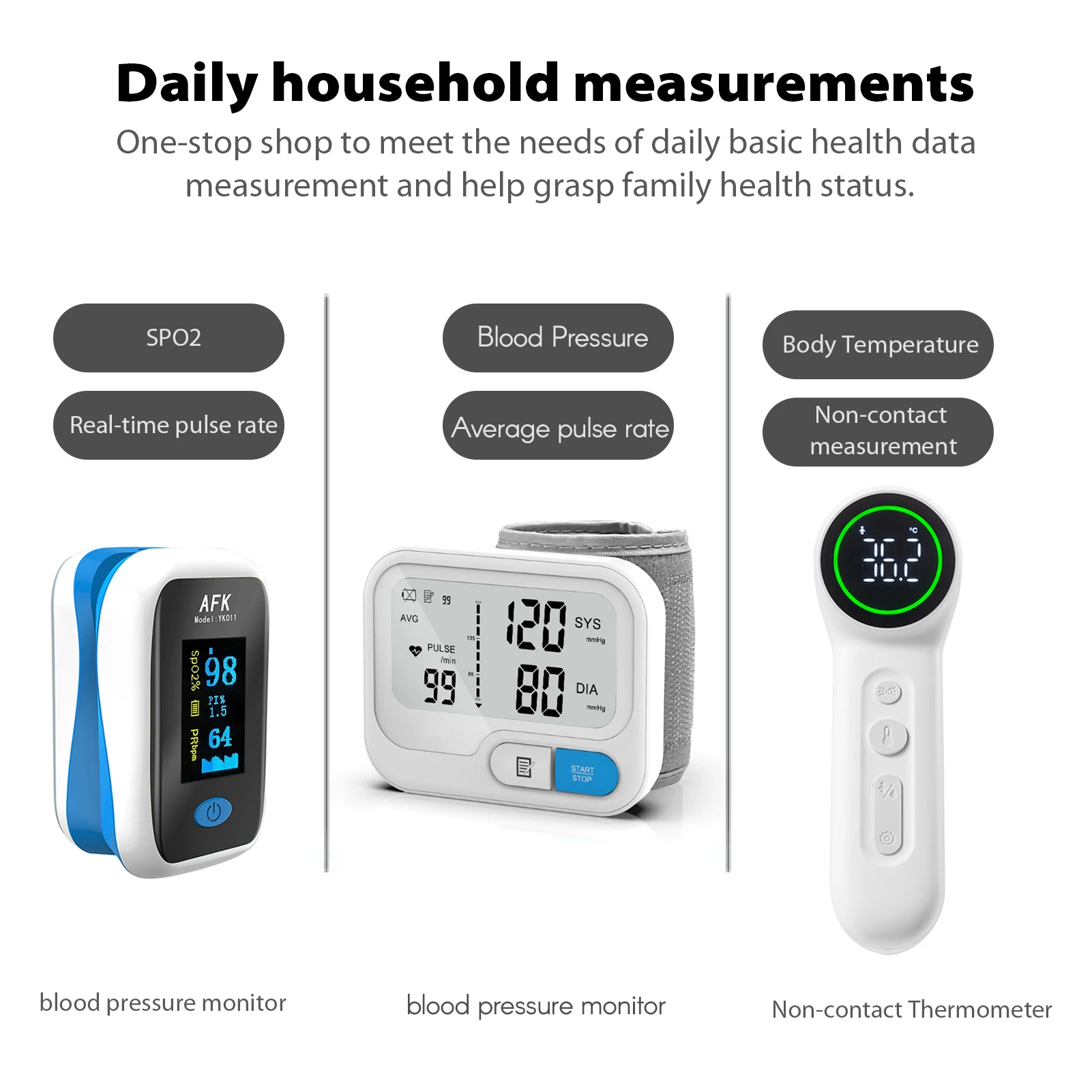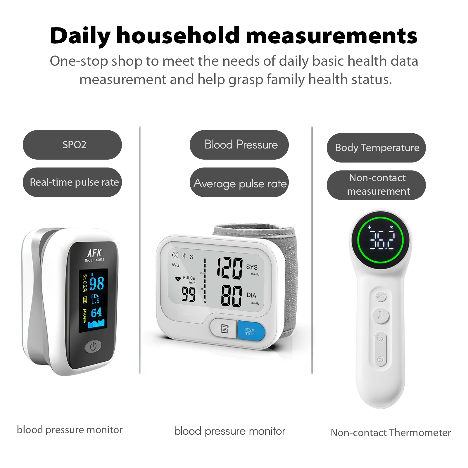 Автоматический тонометр, монитор артериального давления, пульсометр, пульсометр, Сфигмоманометр на палец, Пульсоксиметр + термометр