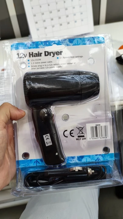 Должным образом: Эта сушилка не может работать очень хорошо, украшенное мозаикой из драгоценных камней, 12 вольт. Он работает, но... Вам нужно гораздо больше времени, чтобы высушить волосы, как в том случае, если вы используете 230 вольт товар.