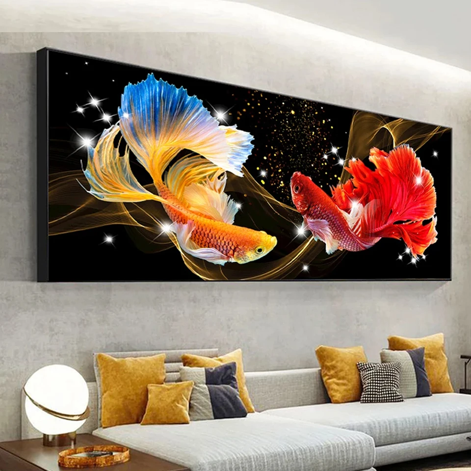Алмазная 5D картина из двух рыбок кои, животное кои, вышивка крестиком, полная Алмазная вышивка, мозаика, большая черная белая Настенная картина EE2240