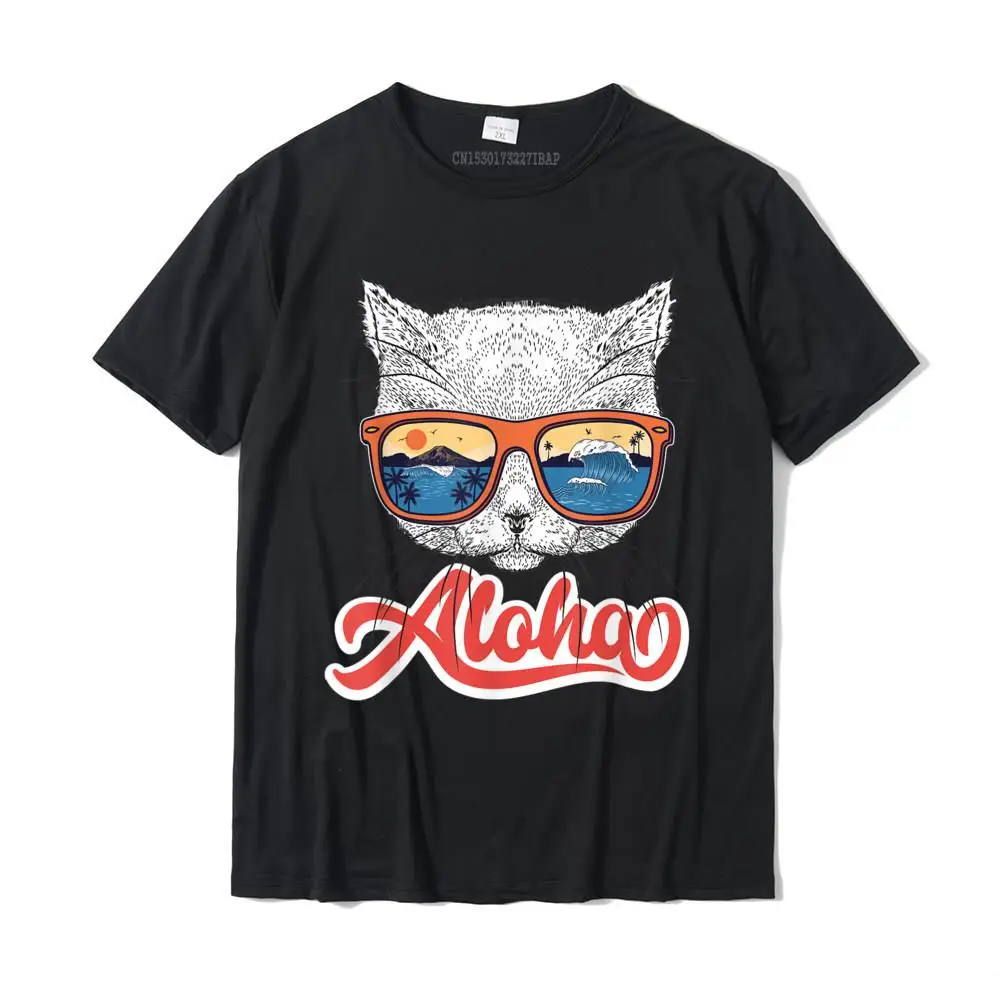 Футболка Aloha с гавайским котом и солнцезащитными очками, забавная Милая женская футболка с котенком, осенняя футболка для мужчин, хлопковые топы, футболка на заказ