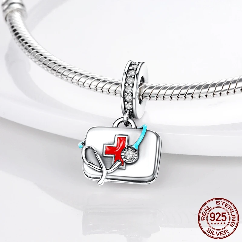 Комплект медицинской первой помощи, серебро 925 пробы, подвески-шармы, подходят для оригинального браслета Pandora, шармы сделай сам, Изящные Ювелирные изделия для друзей