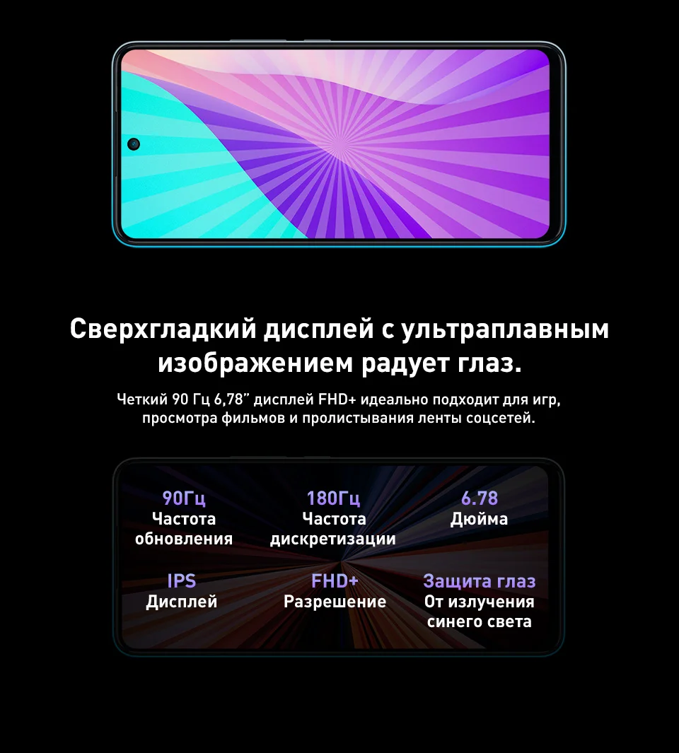 Смартфон Infinix HOT 10s 4+64GB,Helio G85,Частота обновления 90Гц,б...