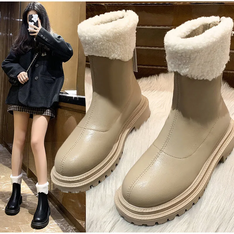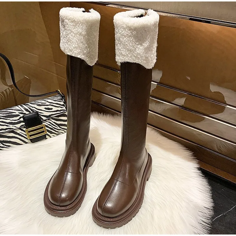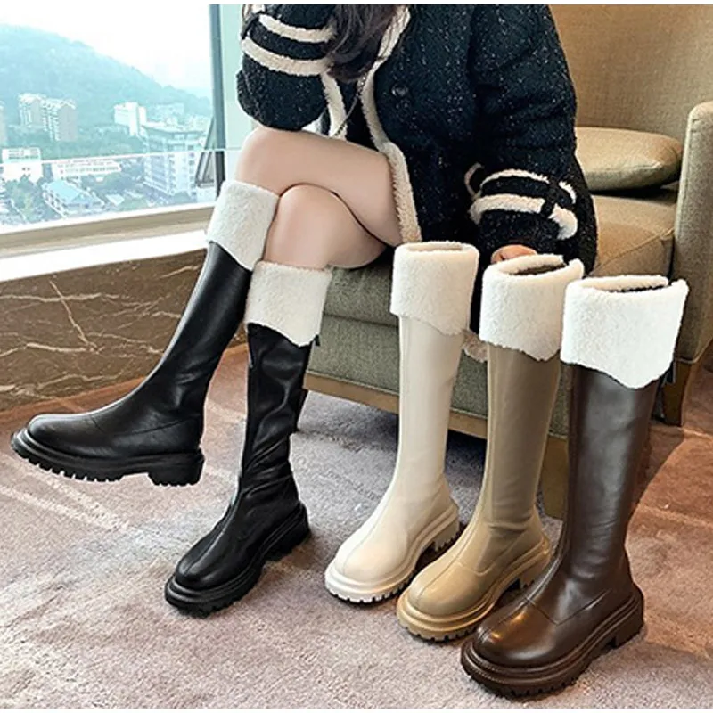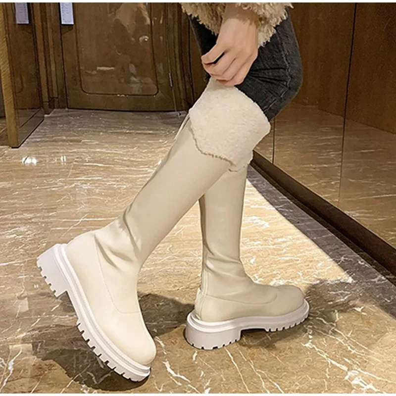 Женские высокие сапоги на толстой подошве; Модные женские сапоги до колена на платформе; Коллекция 2021 года; Плюшевые женские сапоги; Зимняя обувь на меху из мягкой искусственной кожи