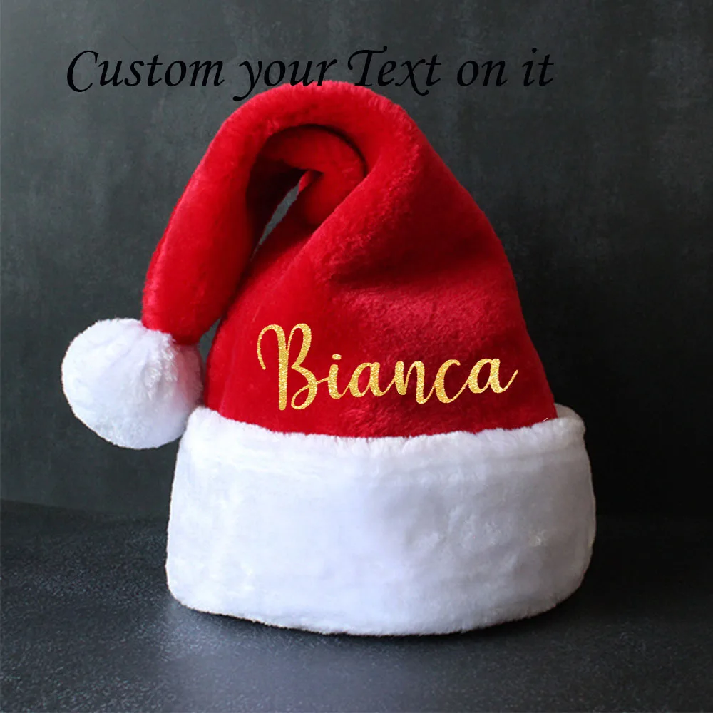 2022 Рождественская шапка с персонализированным именем, рождественские украшения, Детские и взрослые шапки, красная, черная, толстая плюшевая ткань