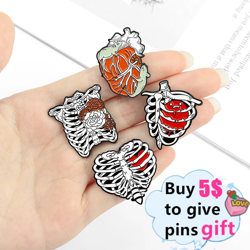 Эмалевые булавки в форме сердца, скелета, анатомические броши для в...
