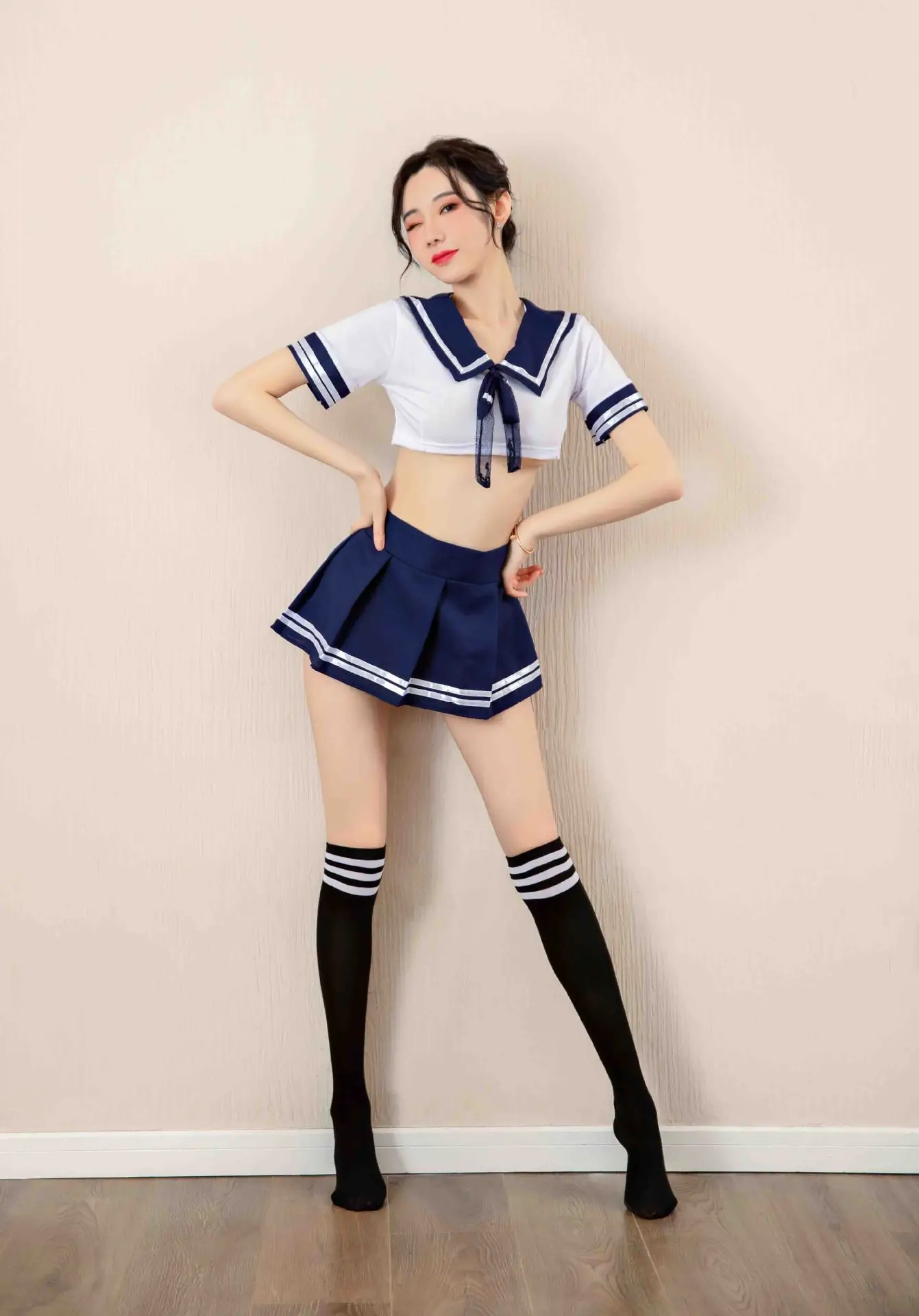 -Посылка:+ Топ+ Мини-юбка+ Пикантные носки-Сексуальное и популярное нижнее белье для школьниц с матросским воротником и галстуком-бабочкой спереди.-Юбка имеет застежку-липучку для регулировки бюста и быстрого включения/выключения.-Это нижнее белье для школьниц, безусловно, является частью для оживления деятельности пар.-Хороший выбор для фотографии, ночной клуб одежда, косплей, вечерние, аксессуары для путешествий.-Отличный подарок для секс-салонов. Вы заслуживаете лучшего.