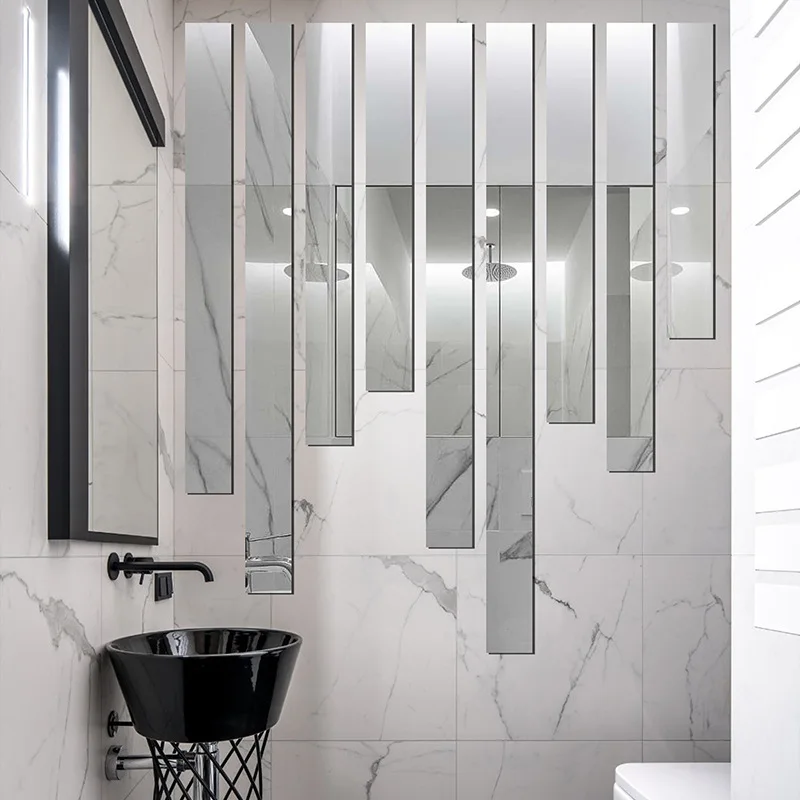 Плоские Декоративные Акриловые 3d зеркальные настенные наклейки, простые линии для гостиной, спальни, геометрический прямоугольник, домашний декор