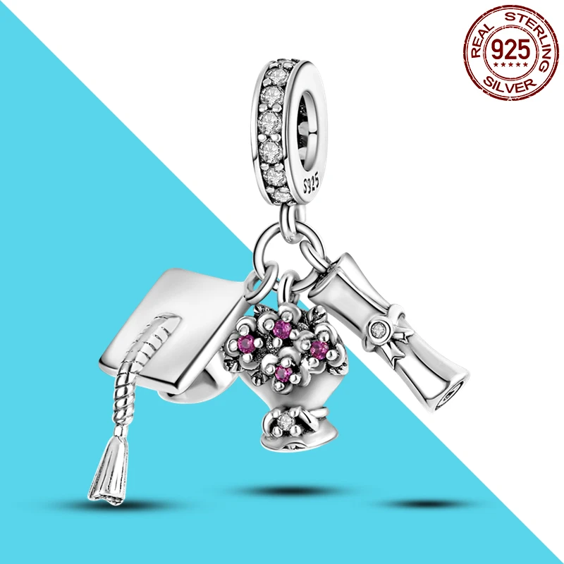 Шарм-подвеска из серебра 925 пробы с изображением цветов на выпускной