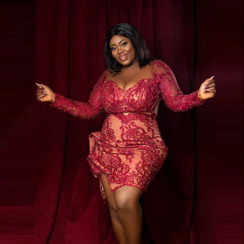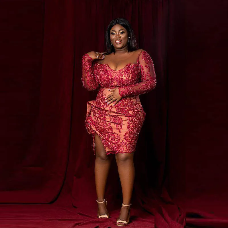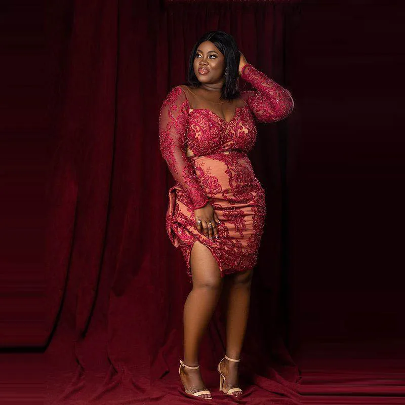 Размера плюс африканские коктейльные платья с бисером, Аппликации, кружевное выпускное платье с Боковым Разрезом Aso Ebi, черные вечерние платья для девушек