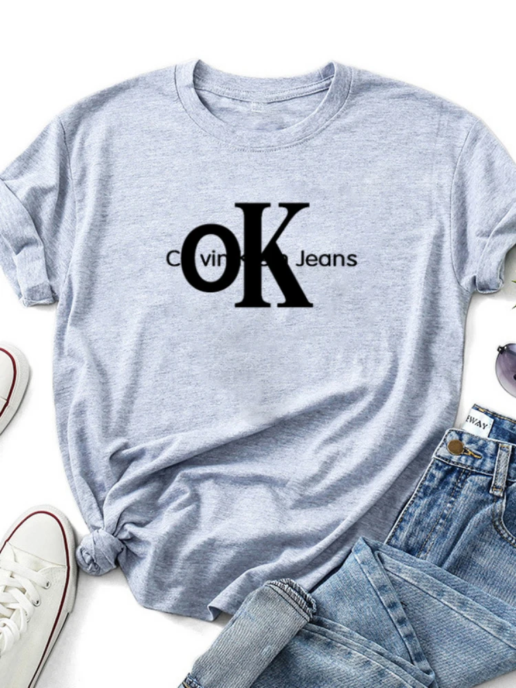 Женская футболка с коротким рукавом, круглым вырезом и принтом