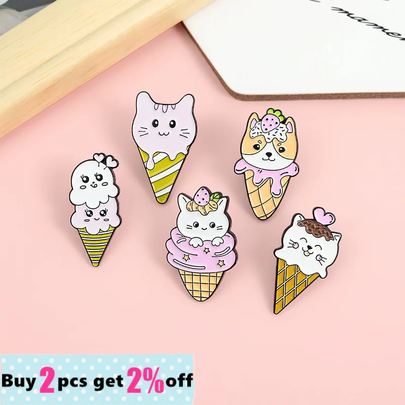 Новинка на заказ, креативная брошь в виде конуса мороженого, собака, кошка, клубника, искусственная эмаль, высококачественное ювелирное изделие из сплава, подарок другу, оптовая продажа