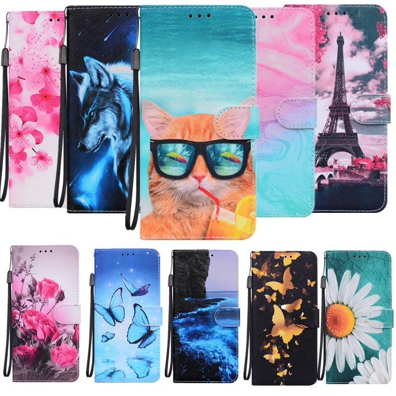 Кожаный чехол-книжка с рисунком для Huawei P30 P40 P50 Pro Honor 9S 8A 8C 8X 9A