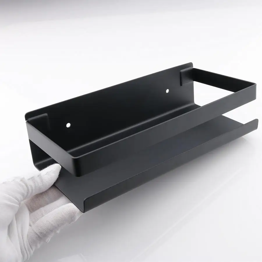 Полка черная для ванной комнаты, кухонная стойка, аксессуары, настенный стеллаж для хранения шампуня и душа, 20-50 см, нержавеющая сталь