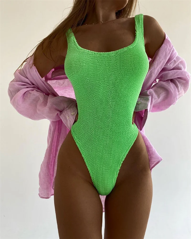 Женский слитный купальник 2022 года, сексуальные стринги, однотонны...