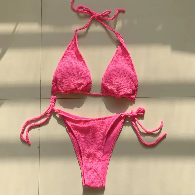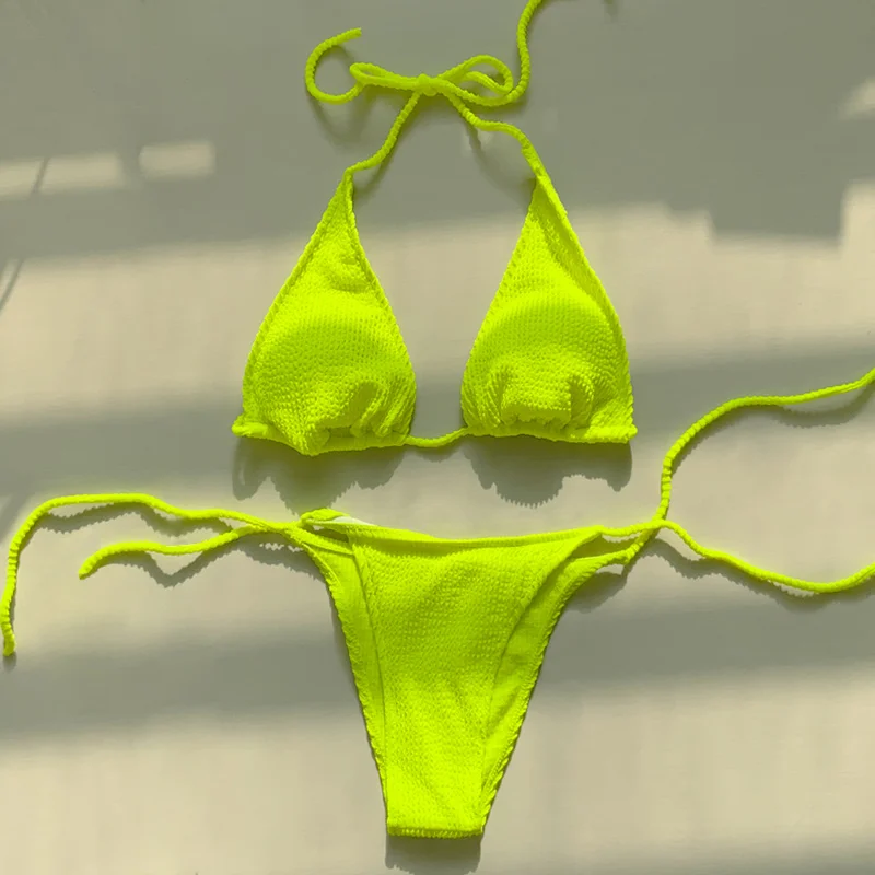 Сексуальный треугольный комплект бикини 2022, Женский однотонный ре...