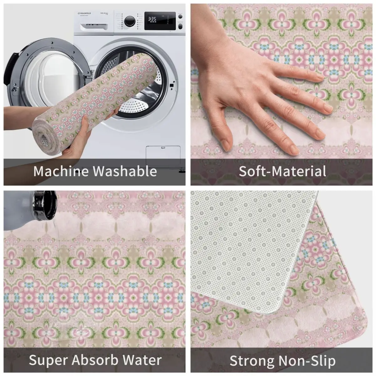 Розовый цветочный Рисунок в стиле бохо, напольный коврик в богемном стиле для спальни, прямоугольной мягкой кухни, искусственный пыленепроницаемый коврик, напольный коврик, коврик для ванной