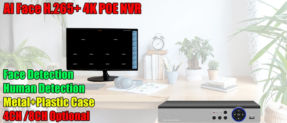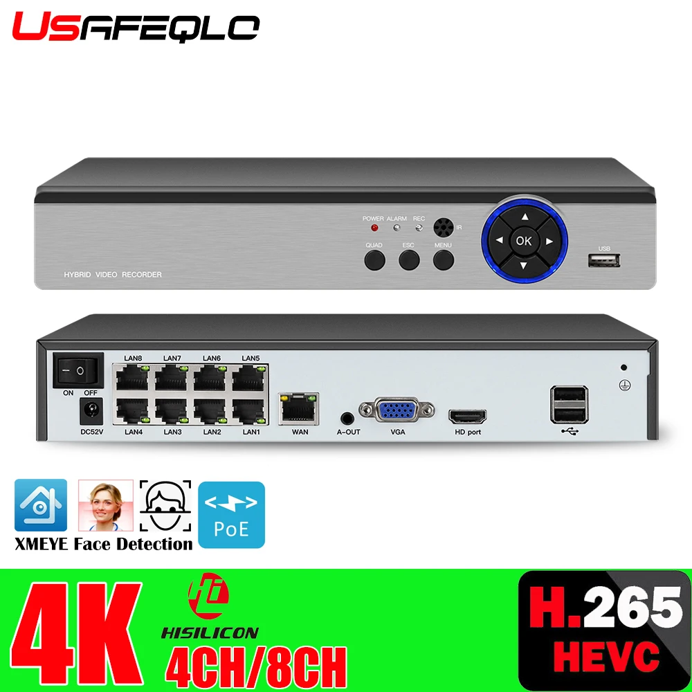 AI распознавание лица, 48 В, POE, NVR, 8 каналов, 4K, 8 м, 5 МП, 1080P