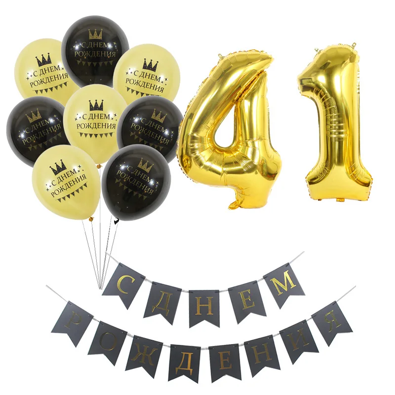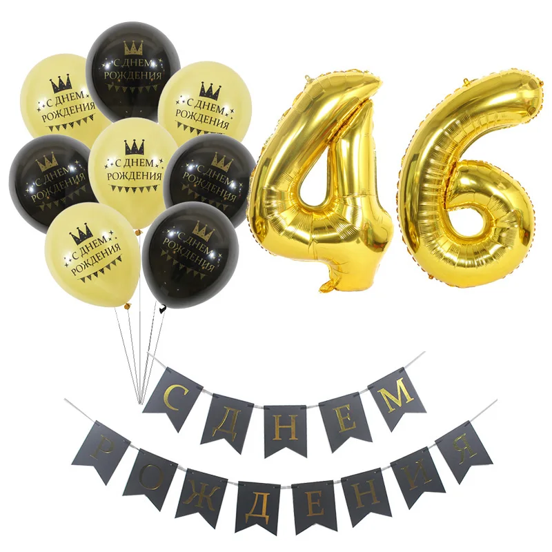 1 комплект, шары на русском языке с номером на заказ, 40, 41, 42, 43, 44, 45, 46, 47, 48, 49 лет на день рождения, золотые фотообои, украшения
