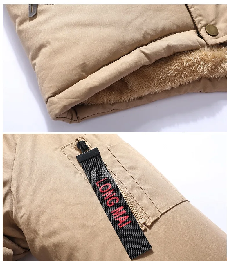 Зимняя Мужская Утепленная куртка с меховым воротником, ветрозащитная теплая парка с капюшоном, уличное пальто на молнии с несколькими карманами, мужские парки